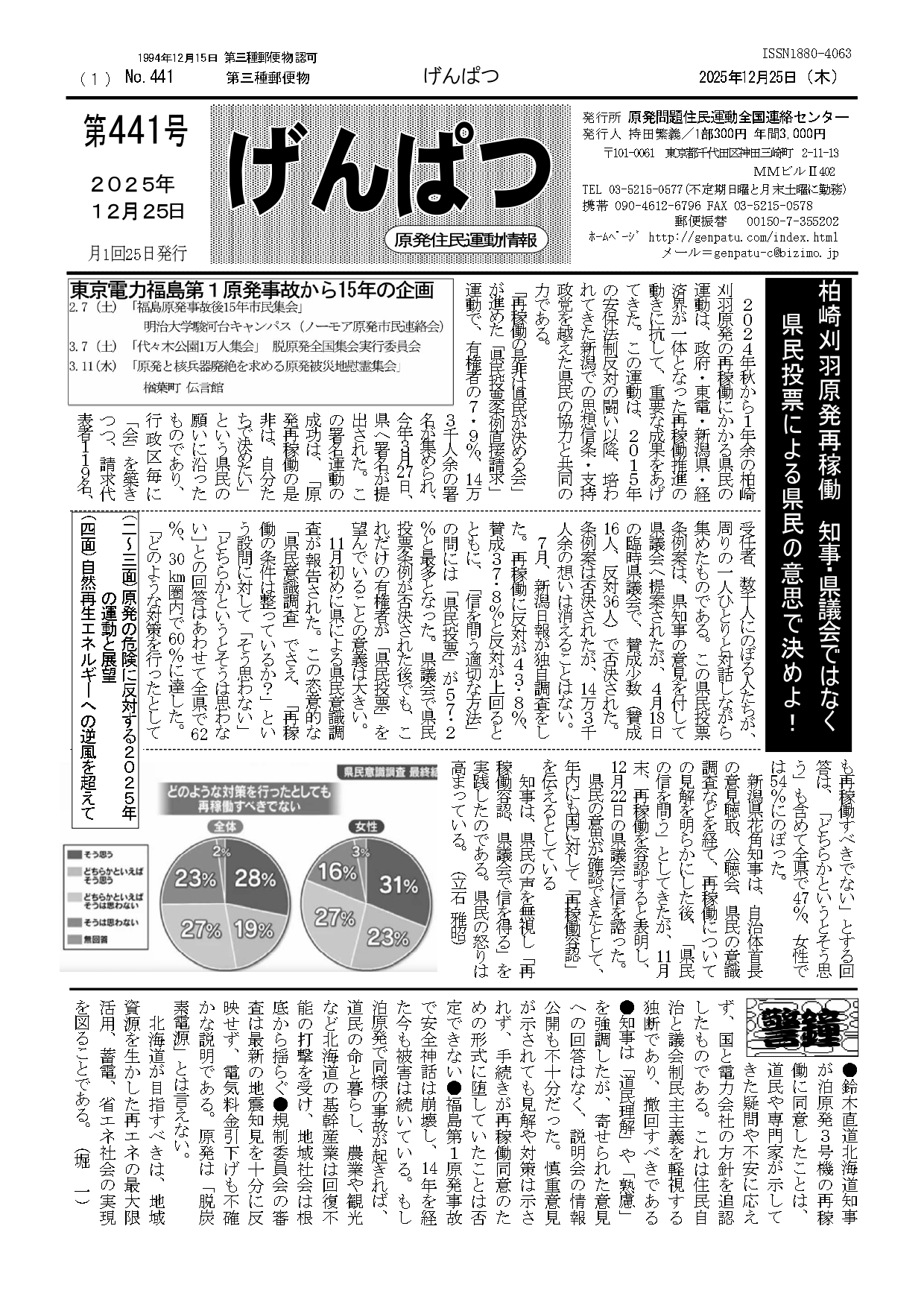 原発問題住民運動全国連絡センターが発行する情報紙「げんぱつ」の最新号を紹介します。