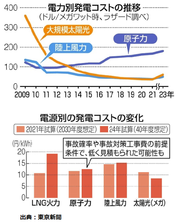 ・原発の事故防止の追加的対策費や燃料代が増加(原発のコスト増要因)