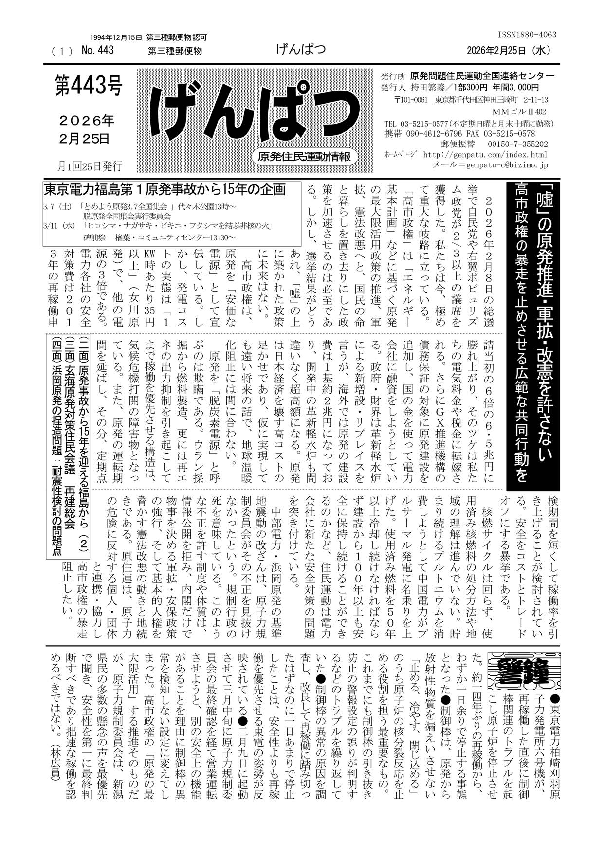 原発問題住民運動全国連絡センターが発行する情報紙「げんぱつ」の最新号を紹介します。