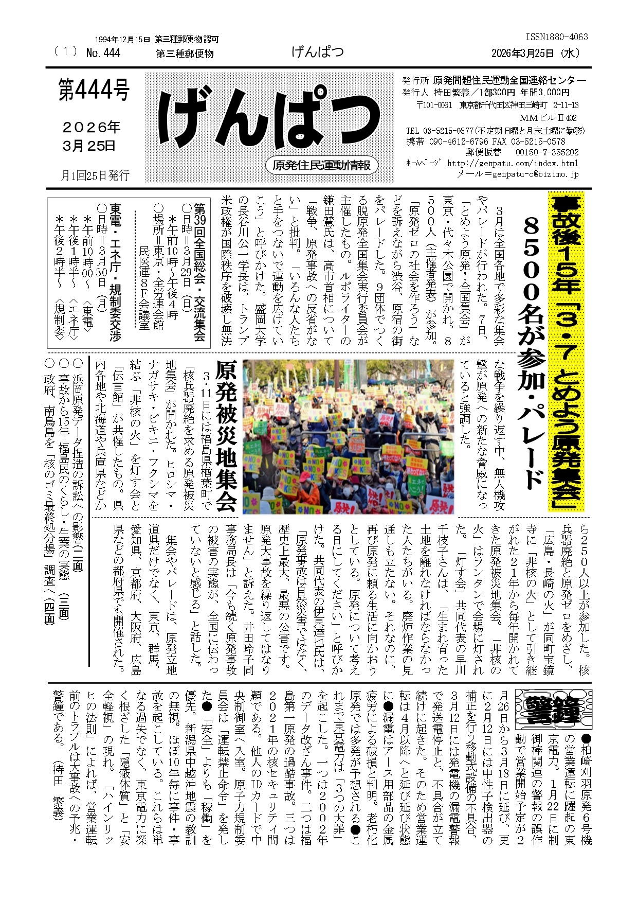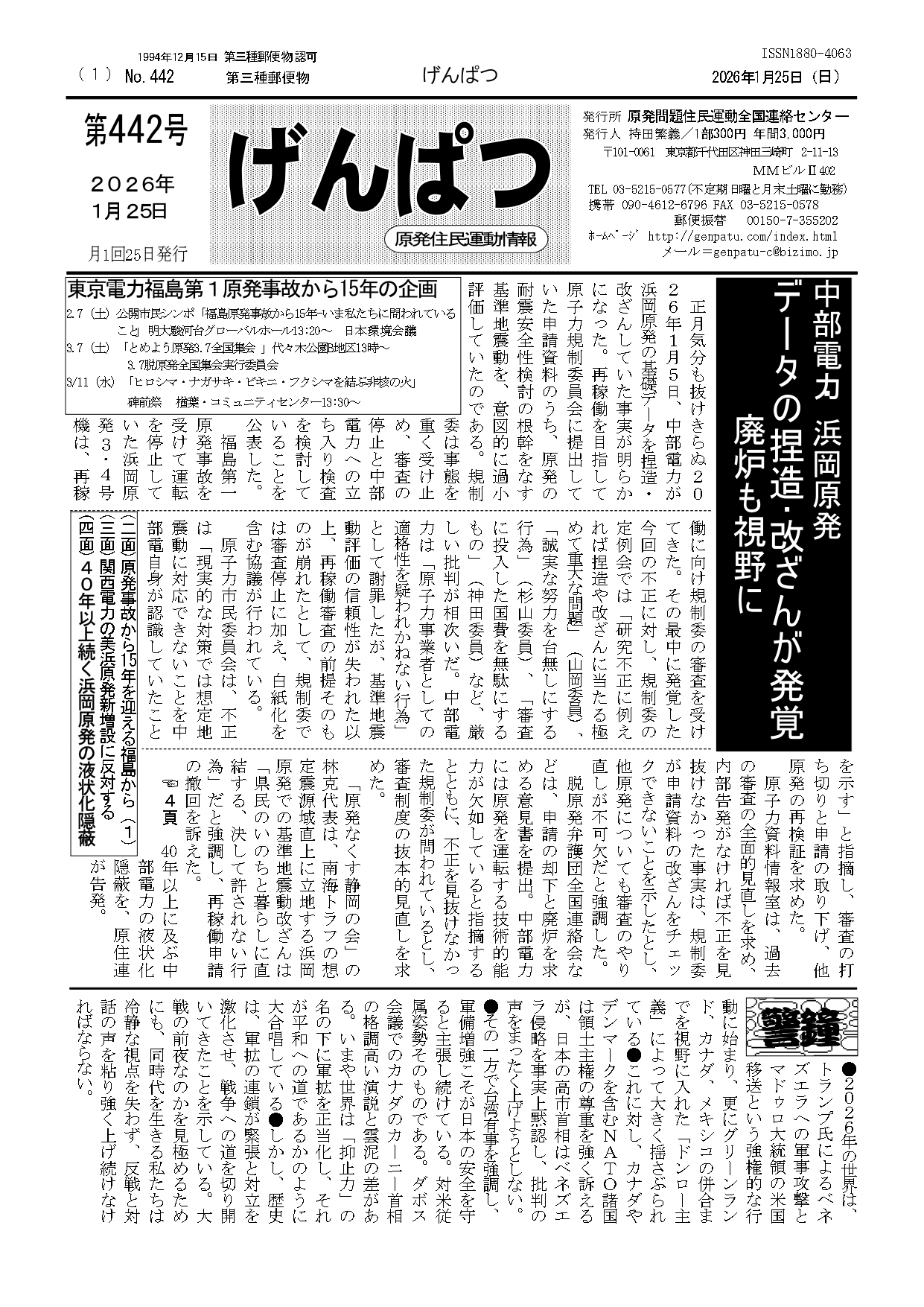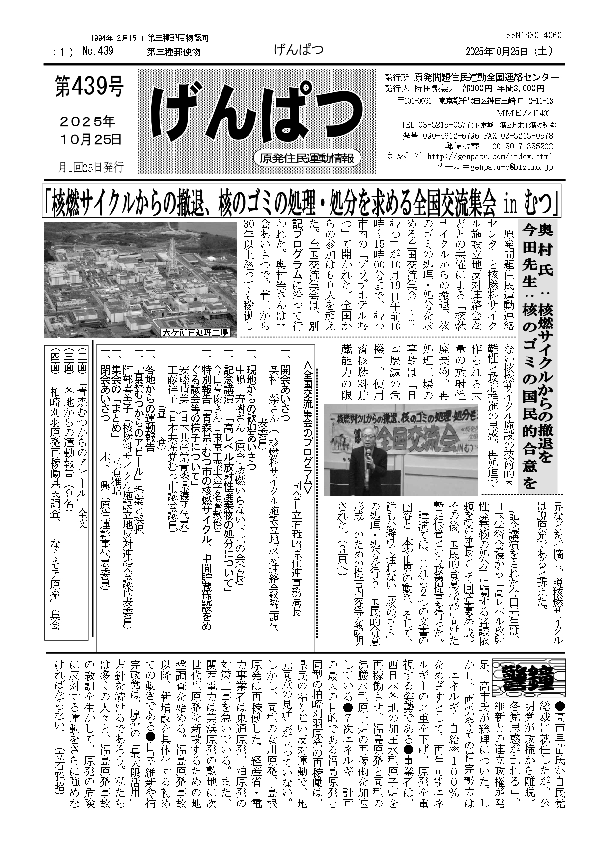 原発問題住民運動全国連絡センターが発行する情報紙「げんぱつ」の最新号を紹介します。